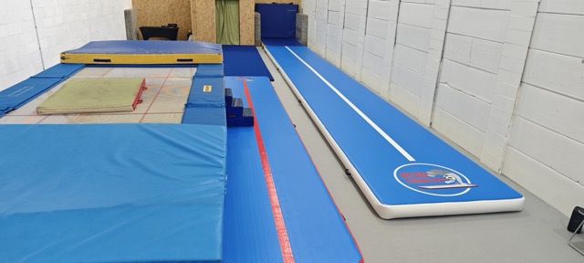 En novembre 2025, l’espace d’entraînements évolue et s’équipe d’un praticable et d’une piste de tumbling gonflable de 15ml.